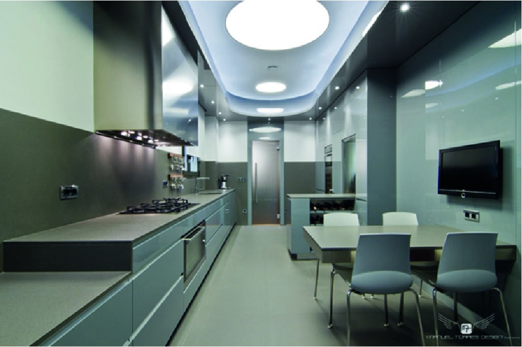 This indirect light is reinforced by the use of auxiliary lamps and spot lights, through the use of downlights with LED lamps, thus creating special and fundamental corners in a home and above all designed to be used for different uses by their habitants.